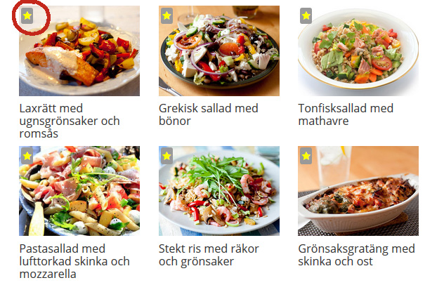 I Receptsamlingen finns också ett par smarta nyheter. Man kan nu favoritmarkera recept och enkelt få fram dem genom att klicka på ”Visa mina favoriter”.