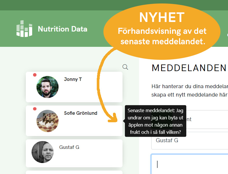 Genom att hålla muspekaren över rutan med klientens namn så kan du nu få en förhandsvisning av det senaste meddelandet. Detta är särskilt bra om du får många meddelanden och behöver prioritera vilka som ska besvaras först.