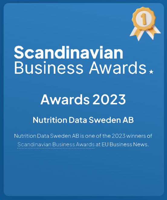 Nutrition Data Sweden AB is one of the 2023 winners of Scandinavian Business Awards at EU Business News.