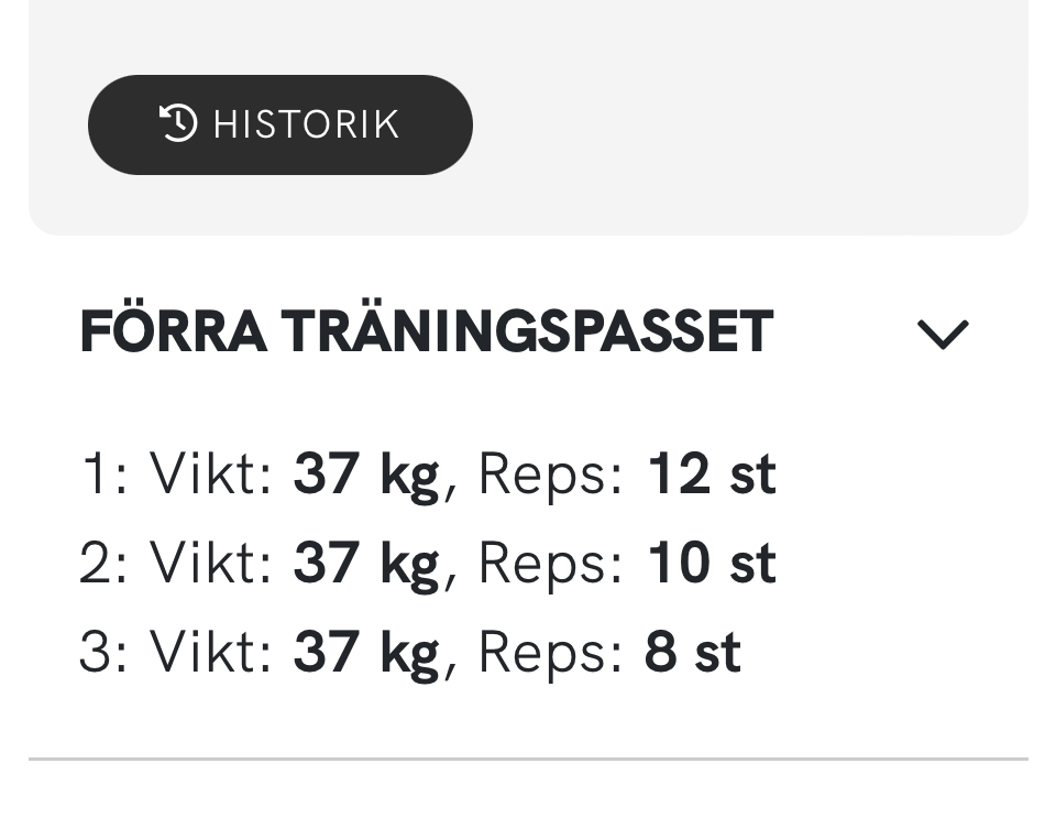 Historik för vikt och reps