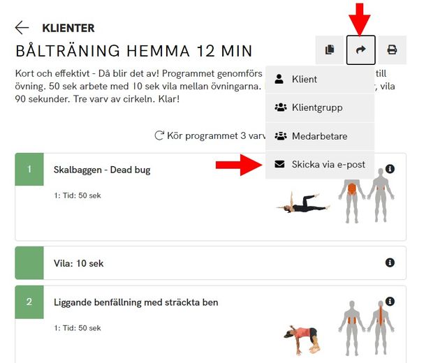 Efter önskemål från kunder har vi lagt till möjligheten att skicka ett träningsprogram som pdf-fil via e-post Detta passar framförallt om man säljer ett enstaka träningsprogram och inte vill lägga in klienten som användare av appen.