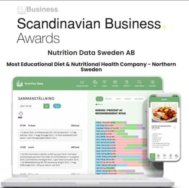 Vi har fått pris! Fantastiskt kul! Nutrition Data har fått denna fina utmärkelse ✨🎈 Most Educational Diet & Nutritional Health Company – Northern Sweden Scandinavian Business Awards 2022 hosted by EU Business News